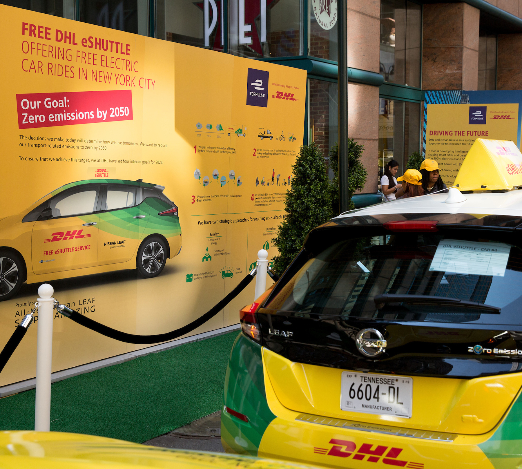 Strategy, Idea Generation, Communications, Project Management, Event Production, Measurement As a founding partner of the series, DHL wanted to promote their core values and shared vision, in addition to their own corporate mission to achieve zero emissions by 2050. The US is a key territory for DHL as they seek to gain market share from their strongest competitors. A disruptive campaign offering fully electric zero-emission taxis to New Yorkers was launched at the New York ePrix. A fleet of Nissan Leaf vehicles offered three days of complimentary rides around Manhattan. A world first, the activity was promoted by lifestyle influencers and caught the attention of key media outlets including CNN, Bloomberg, Yahoo Finance, Nismo, Business Wire, NYC Metro and Bullz-Eye.com reaching over 1.9 million people. By taking direct action, DHL demonstrated they are committed to addressing long-term sustainability challenges and driving change through new technologies. #DHLeShuttle DHL & FORMULA E